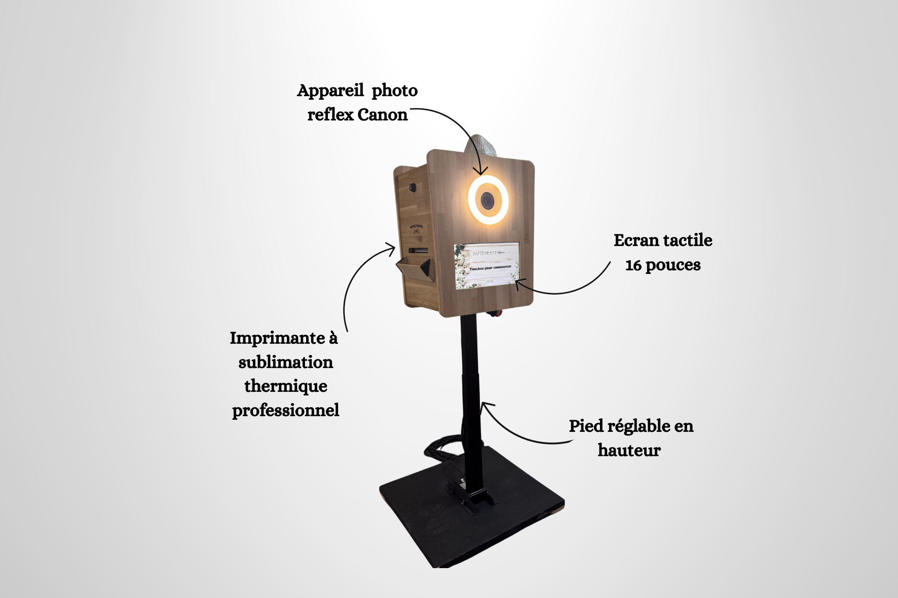Pour capturer ces moments précieux, nos bornes photobooth sont l’accessoire idéal. Elles offrent à vos invités la possibilité de repartir avec des souvenirs instantanés et uniques, et de partager leurs photos sur les réseaux sociaux.
