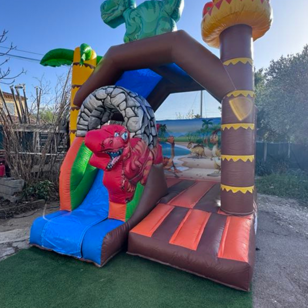 Château Gonflable "Aventure Dino" 🦖🌴 Plongez dans un monde préhistorique avec notre château gonflable sur le thème des dinosaures ! Ce jeu spectaculaire aux couleurs éclatantes transporte les enfants dans une jungle remplie de créatures fascinantes. Avec son toboggan intégré, sa zone de saut spacieuse et ses décors impressionnants, ce château promet des heures de rires et d’aventures. Idéal pour les anniversaires, fêtes de famille, kermesses et événements d’entreprise, il garantit amusement et sécurité pour les petits explorateurs. Caractéristiques : ✅ Dimensions : 4,50 m (profondeur) x 3,50 m (largeur) x 4,50 m (hauteur) ✅ Capacité : 8 à 10 enfants simultanément ✅ Âge recommandé : 3 à 10 ans ✅ Toboggan + espace de saut sécurisé ✅ Installation rapide et facile ✅ Matériel aux normes de sécurité 📍 Réservez dès maintenant et offrez une aventure unique aux enfants !