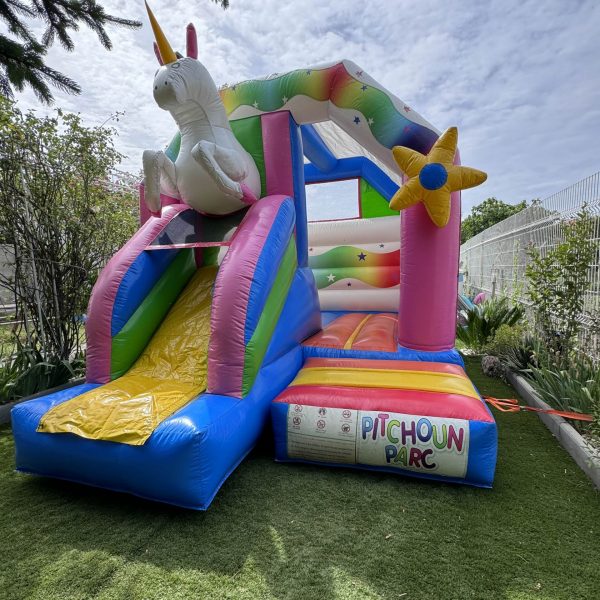 Plongez dans le royaume enchanté de notre château gonflable Combo Licorne ! Cette structure adorable, dotée d'un espace de rebond couvert, offre aux enfants un monde magique où ils peuvent sauter et jouer en toute sécurité. Avec des dimensions de 4 mètres de profondeur, 3,5 mètres de largeur et 3 mètres de hauteur, ce château comprend également un toboggan pour des descentes pleines de plaisir. Ses superbes couleurs et son design licorne ajoutent une touche féerique à toute fête ou événement. Laissez les enfants explorer leur imagination et créer des souvenirs magiques dans notre château gonflable Combo Licorne !