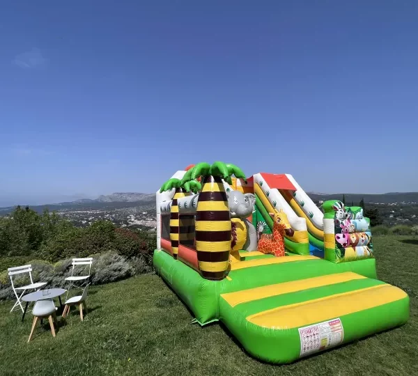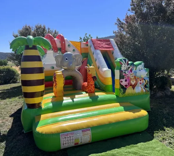 ✅ Dimensions : 4,50 m (profondeur) x 4,00 m (largeur) x 4,00 m (hauteur)✅ Capacité : 8 à 10 enfants simultanément✅ Âge recommandé : 3 à 10 ans✅ Toboggan + espace de saut sécurisé✅ Décor Jungle avec animaux en 3D✅ Installation rapide et facile✅ Matériel conforme aux normes de sécurité
