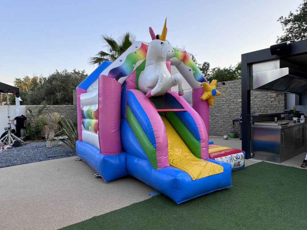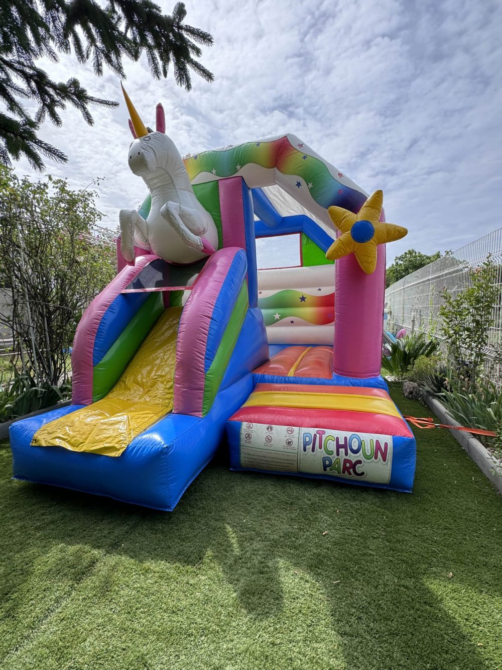 Plongez dans le royaume enchanté de notre château gonflable Combo Licorne ! Cette structure adorable, dotée d’un espace de rebond couvert, offre aux enfants un monde magique où ils peuvent sauter et jouer en toute sécurité. Avec des dimensions de 4 mètres de profondeur, 3,5 mètres de largeur et 3 mètres de hauteur, ce château comprend également un toboggan pour des descentes pleines de plaisir. Ses superbes couleurs et son design licorne ajoutent une touche féerique à toute fête ou événement. Laissez les enfants explorer leur imagination et créer des souvenirs magiques dans notre château gonflable Combo Licorne !