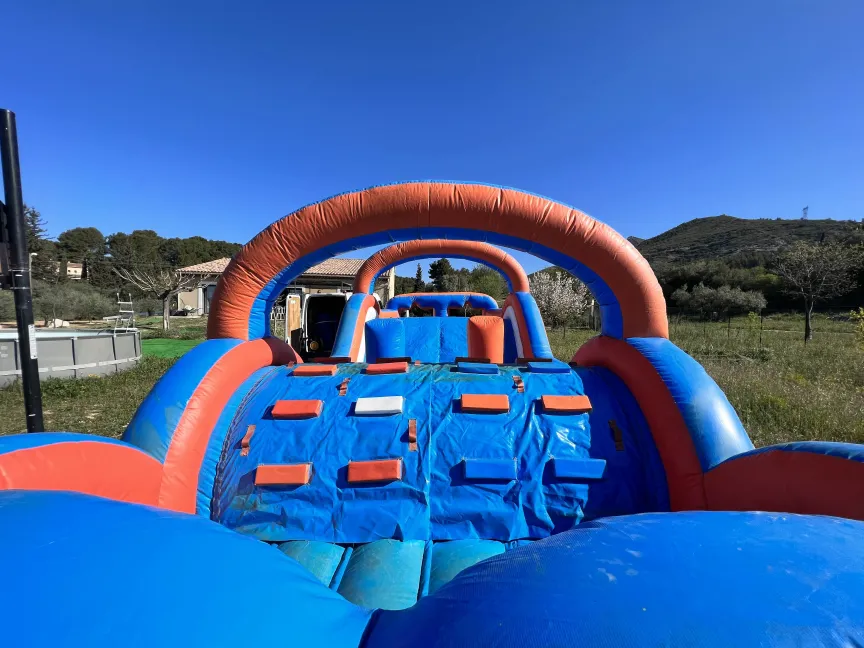Faites monter l’adrénaline à vos événements avec notre incroyable parcours gonflable d’aventure! Mesurant 10,50 mètres de long sur 4 mètres de large, ce parcours est parfait pour les fêtes d’anniversaire, les festivals, les kermesses et les événements d’entreprise, offrant des défis passionnants pour les participants de tous âges. Caractéristiques :